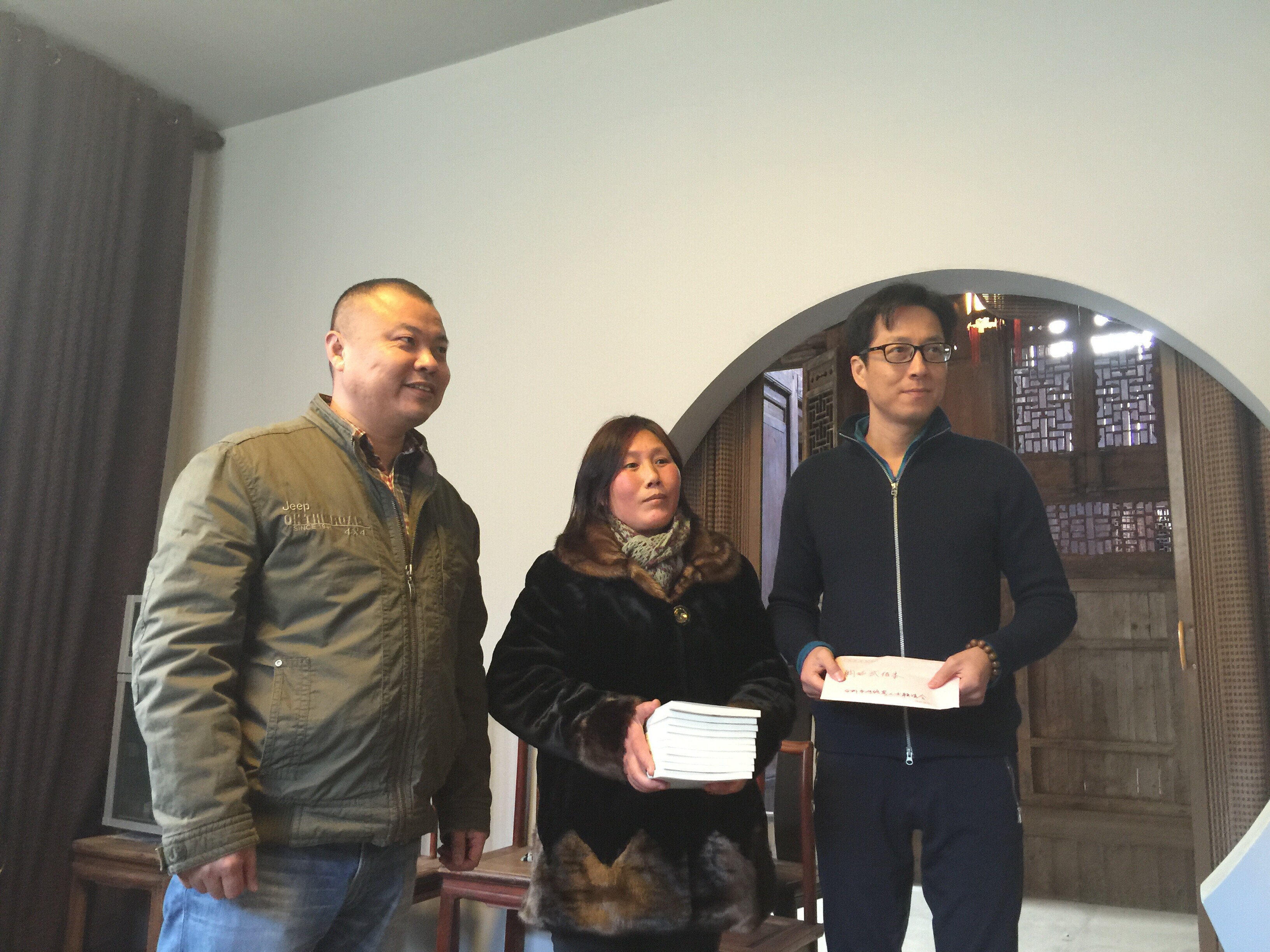 2014年12月21日,公司董事长代表台州市网络界人士联谊会慰问了“草根作家”赵林。 赵林,笔名赤日炎炎。生于1966,农民世家,原籍安徽婚嫁浙江,农民工,自幼失学,只小学文化,打工和卖油葱饼为生。2010年开始读书,2011年练习写作,2013年开始写作长篇小说。已完成《庄稼人》、《看不见的顶部》长篇的写作、在报刊和杂志上发表过多篇短篇小说和散文。以作者生活为原型拍摄的微电影《相信梦想》获第二届亚洲电影节金海棠奖。